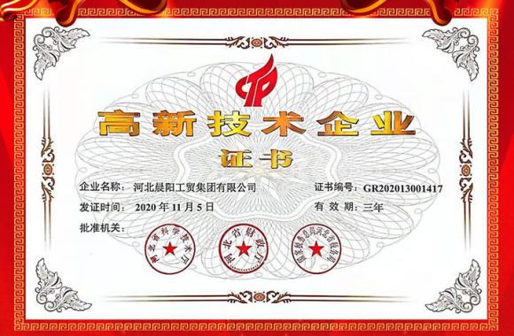 河北晨陽工貿集團再(zài)次榮獲“高新技(jì)術企業”認證